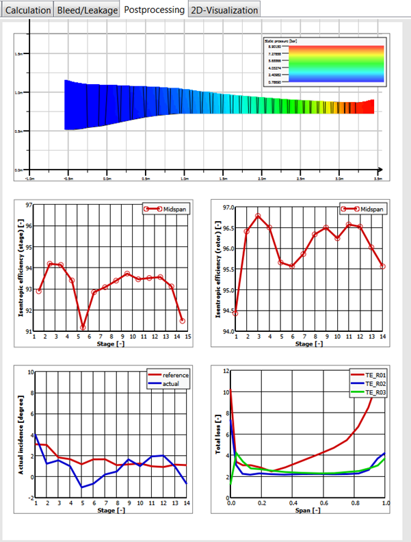 and also aerodynamic dependencies with respect to relative inlet Mach number and relative inlet tangential flow angle. The necessary 2D data and corresponding XML files, which are used by ACF2D, can easily be created, evaluated and manipulated by means of the B&B-AGEMA tool PDEM (Performance Data Evaluation and Manipulation tool). The 2D data are interpolated by means of 2D Akima splines.