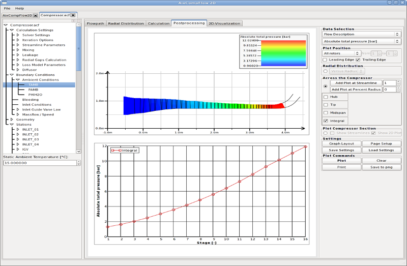 AixCompFlow 2D (ACF2D) is a design software and tool based on a streamline curvature method for analysis and design of multi-stage axial compressors. It combines the special expert knowledge and adapted compressor profile correlations to a highly efficient and reliable design tool with special focus on axial compressors for heavy duty and industrial gas turbines for electric power generation.