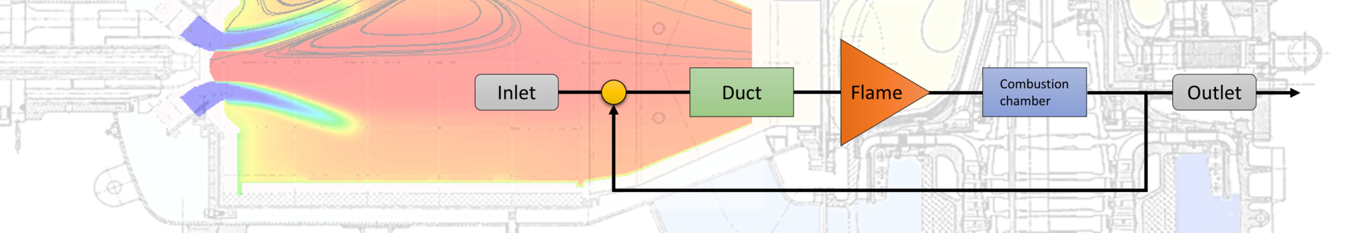 Based on real combustor geometry, the software constructs a network model consisting of multiple acoustic elements. The properties of these elements are parameterized, allowing for further adjustments based on measurement data. Acting as the source of unsteady heat release, the flame serves as one element in the acoustic network. Its transfer function can be approximated using analytical models or, more accurately, obtained from experimental data or numerical analysis and directly imported into the software. Thanks to the parameterized feature, geometric modifications can be easily incorporated into the CSC network model.