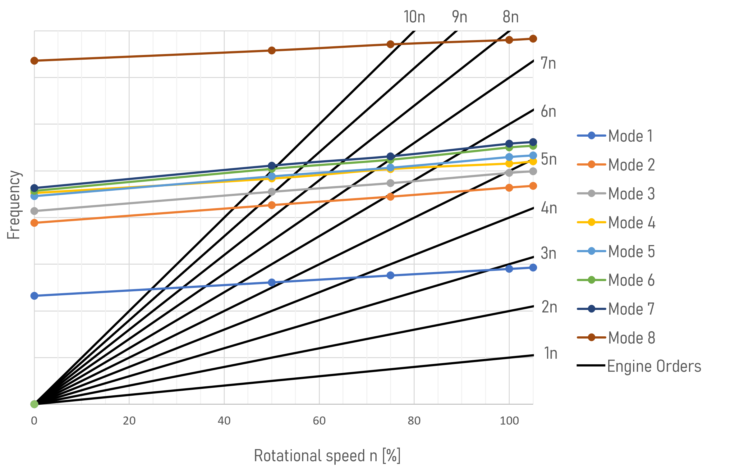 Knowing the vibrational behaviour and natural frequencies is an essential step to determine whether resonance with known excitation frequencies - and therefore, subsequent damage - can occur. In that case the component can be adapted in order to alter its natural frequencies and avoid the resonance.